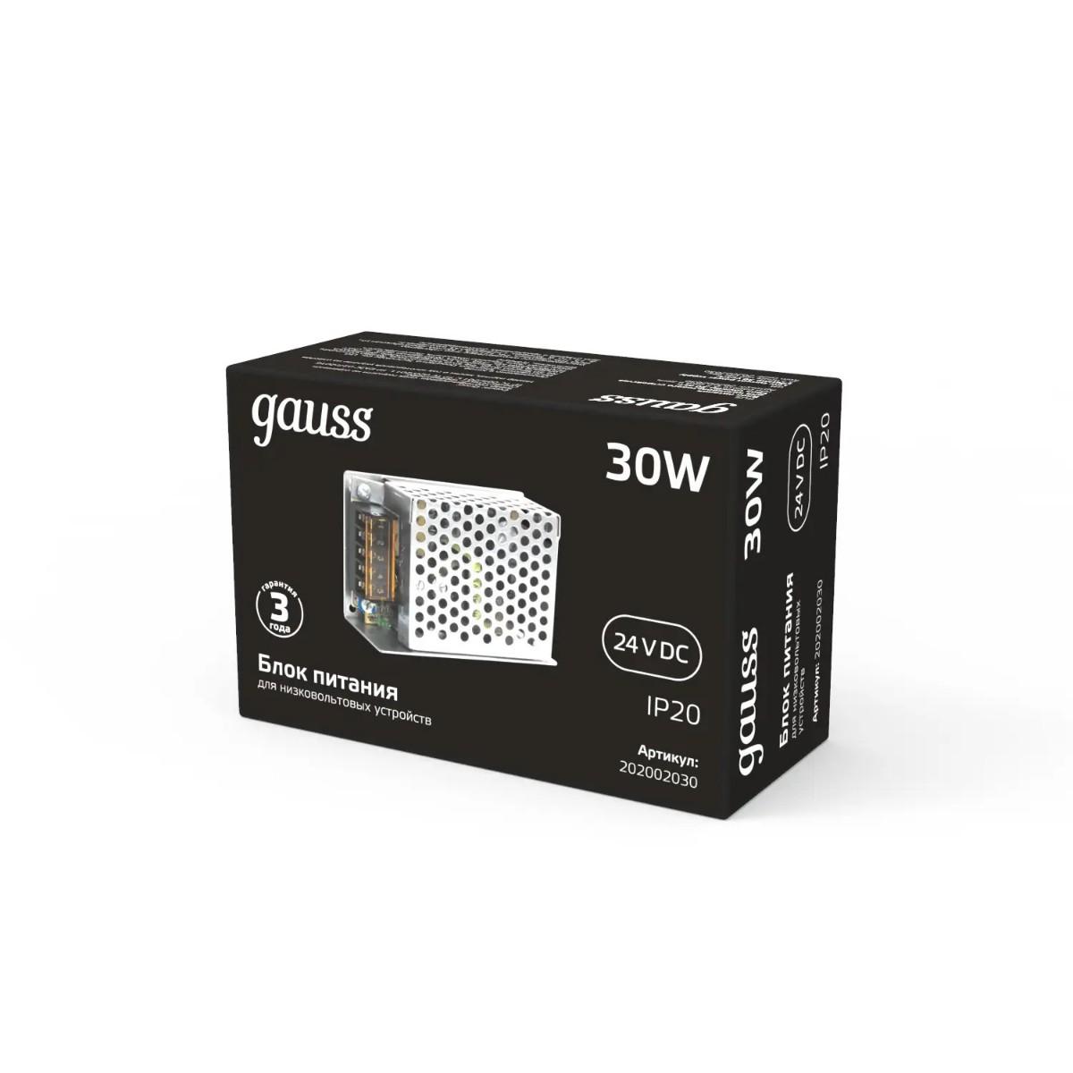 Блок питания Gauss 30W 24V IP20 202002030