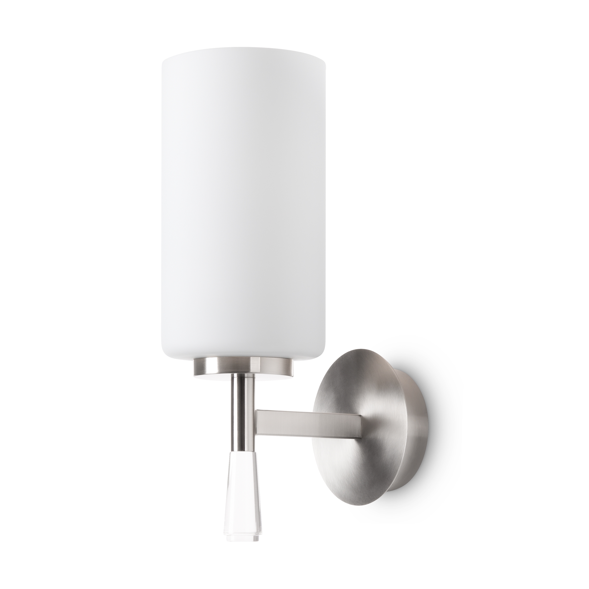 Металлическая арматура: латунь или никель (новинка серии).Белые стеклянные плафоны цилиндрической формы, направленные вверх.. Хрустальное основание с акриловыми каплями. Лампа E27.