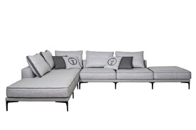Диван трехместный (2 секции) с канапе и мех черно/серый Garda Decor TURIN-TMN3-2S-Santo1606