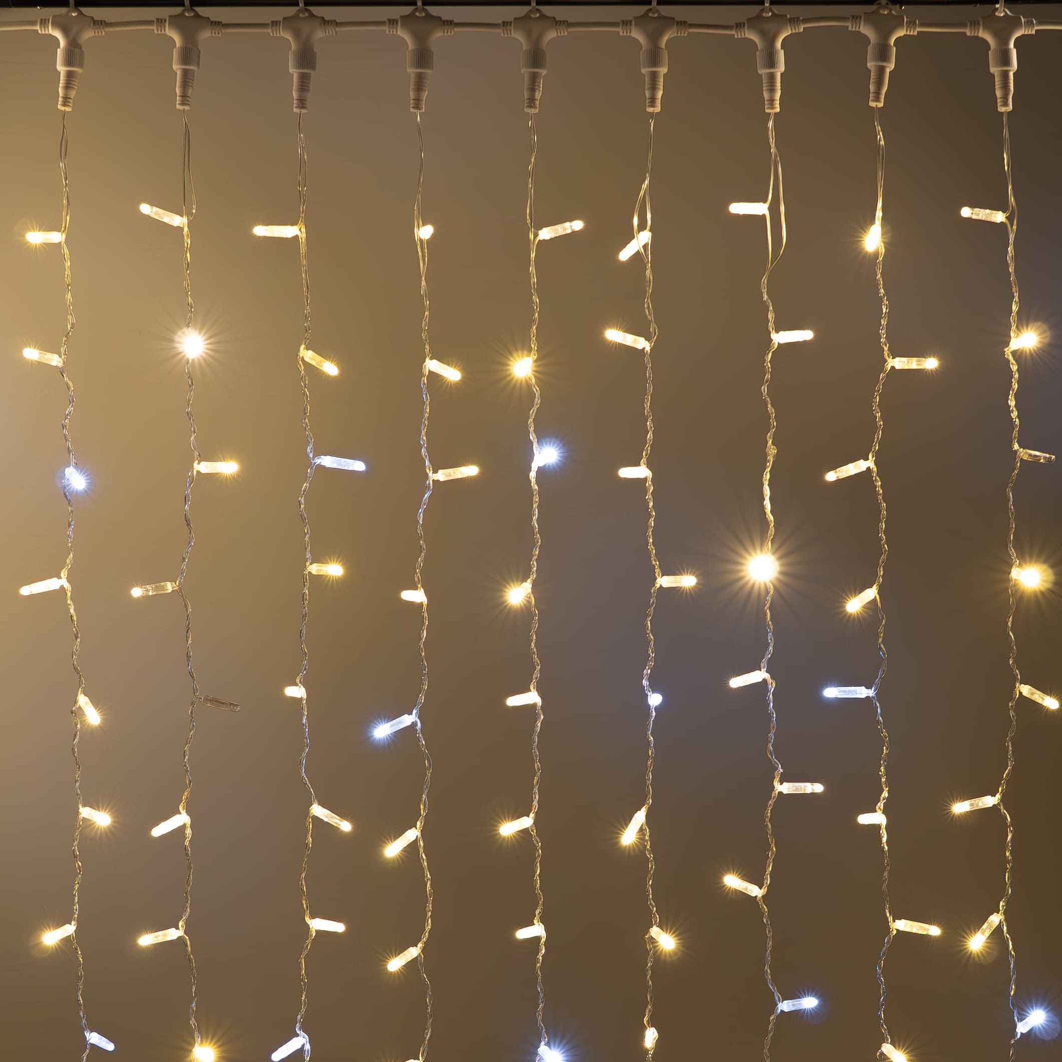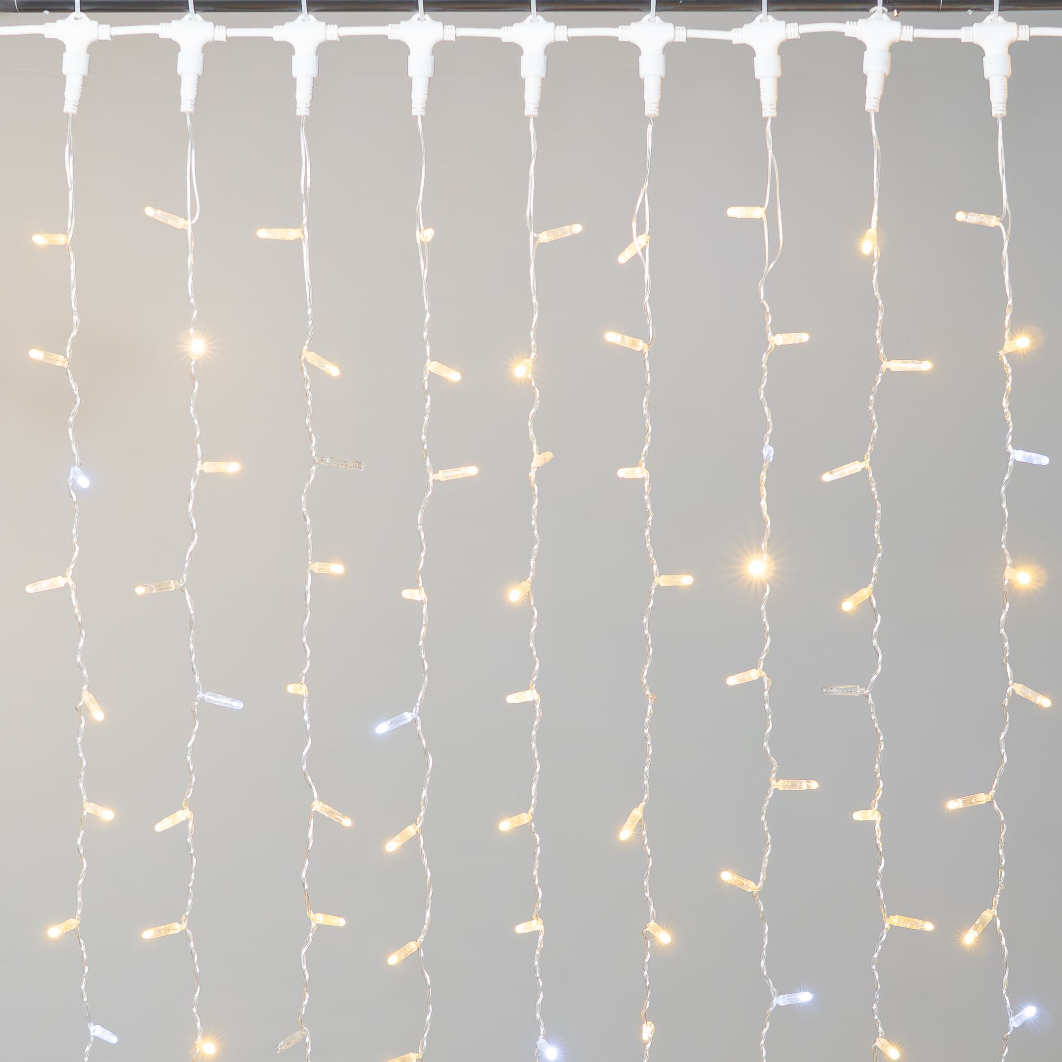 Гирлянда Занавес с Колпачком 2 x 3 м Тепло-Белый с Мерцанием Белого Диода 220В, 600 LED, Провод Прозрачный ПВХ, IP65 LTC PCL602BLWCAP-10-2WW