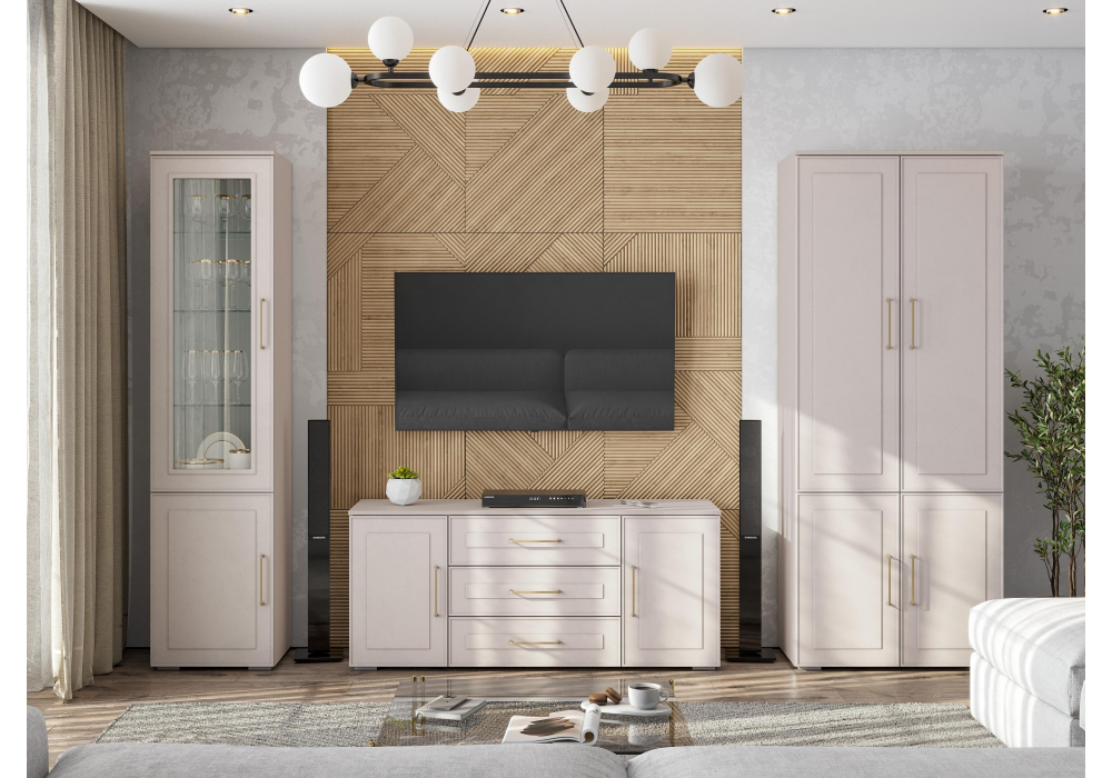 Купить "Готовая гостиная комплектация 3 Woodville Мотру кашемир / шампань комплектация 3 584209"