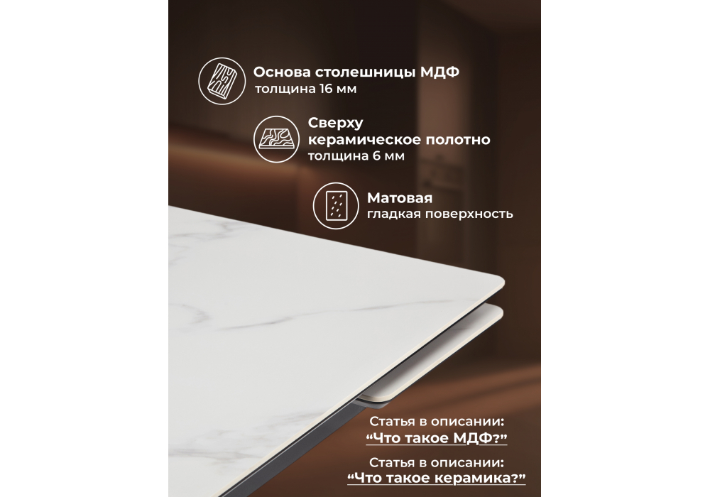 - Материал столешницы: Керамика