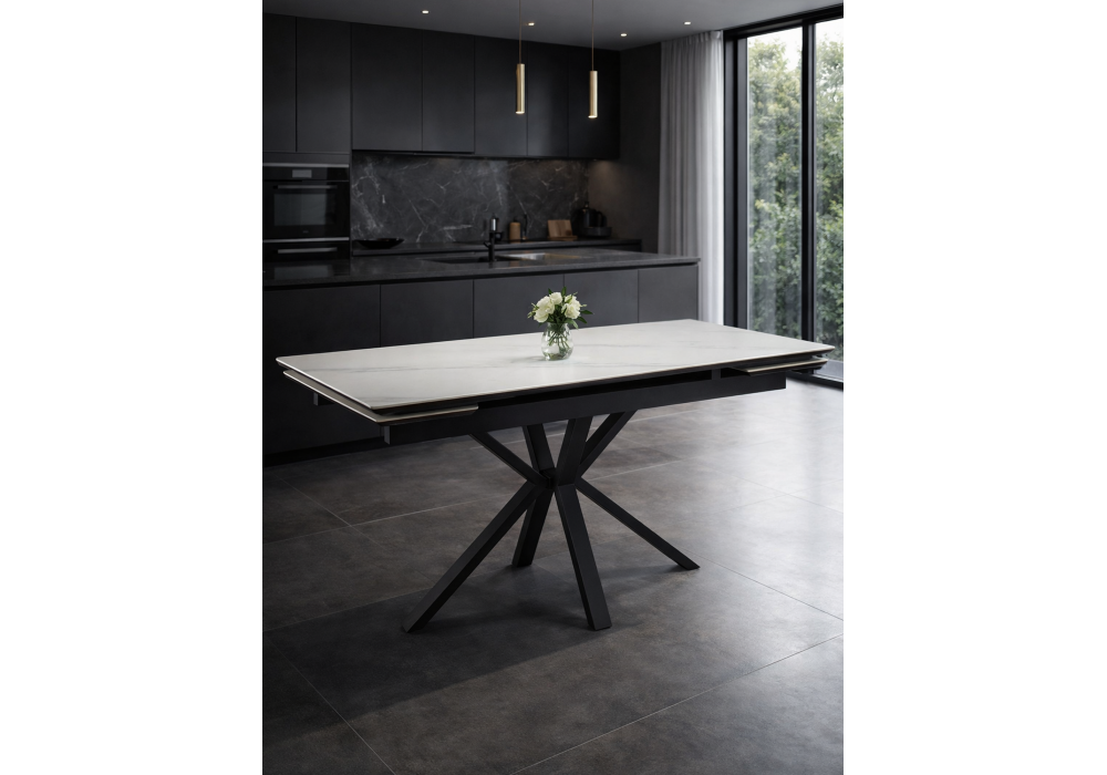 Керамический стол 140(200)х80 раскладной Woodville Старлайт snow alpin white / черный 622891