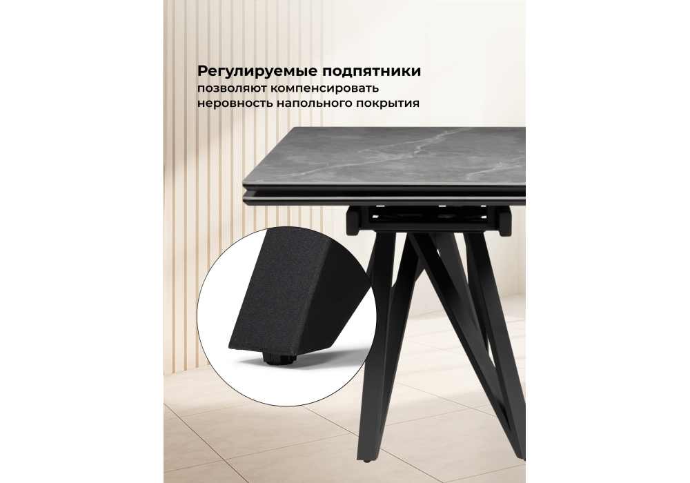 Купить "Керамический стол раскладной Woodville Вилсон 140(200)х80 серый мрамор larka grey / черный 625959"