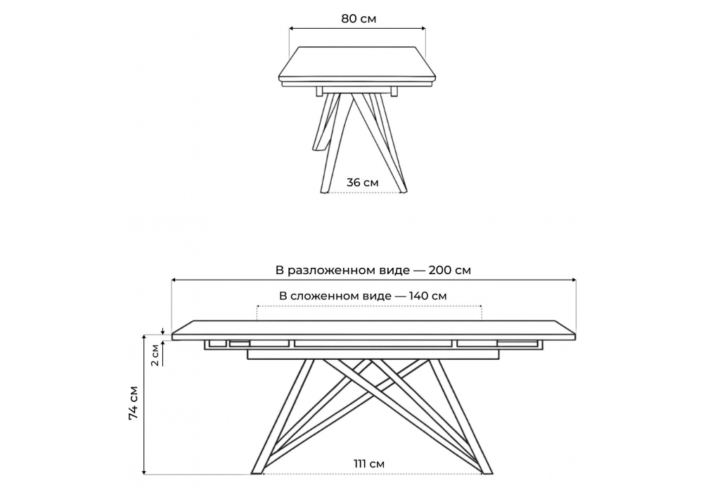 - Длина стола в разложенном виде: 2000