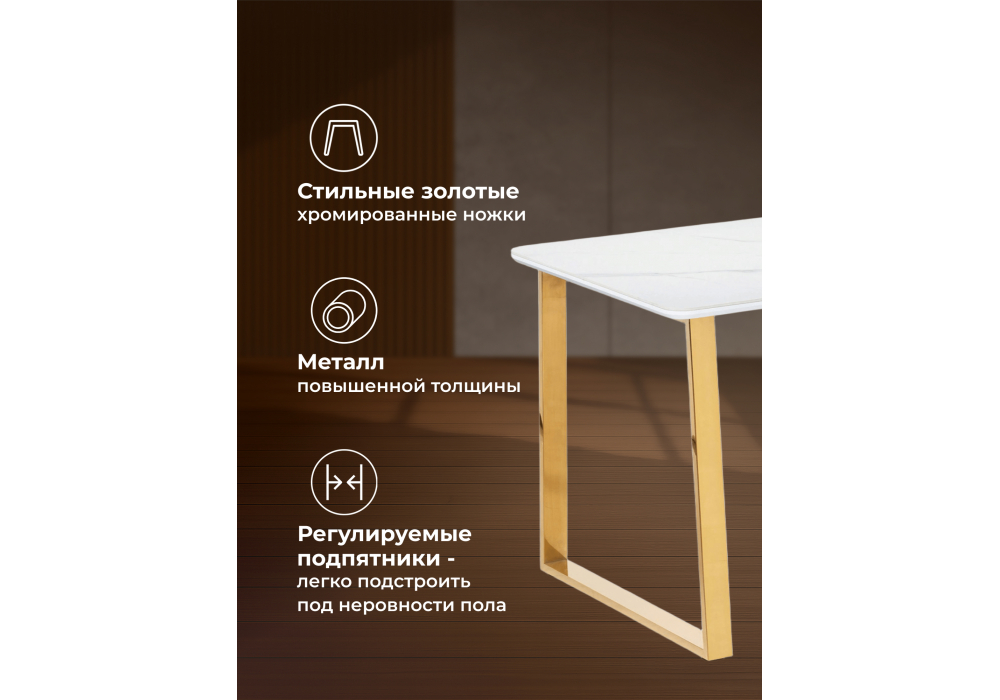 Купить "Керамический стол Woodville Селена 2 140х80х77 белый мрамор / золото 571412"