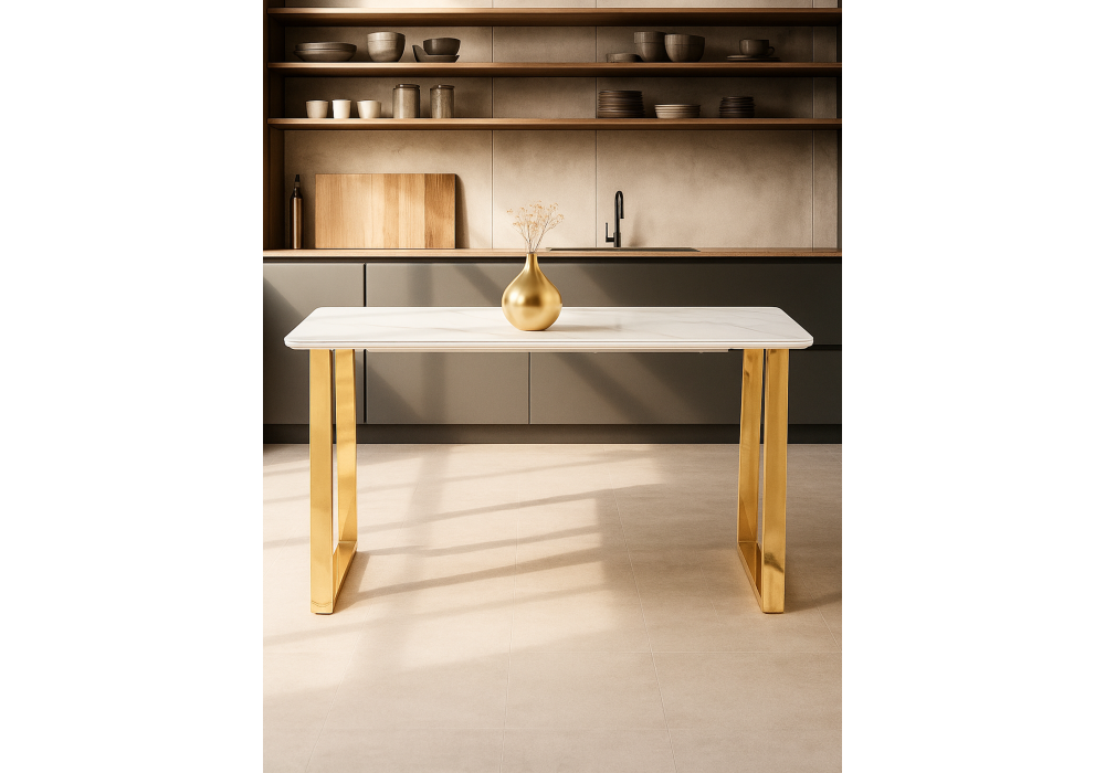 Керамический стол Woodville Селена 2 140х80х77 белый мрамор / золото 571412