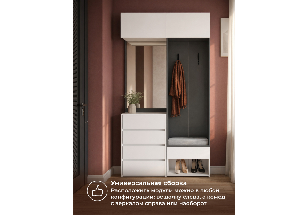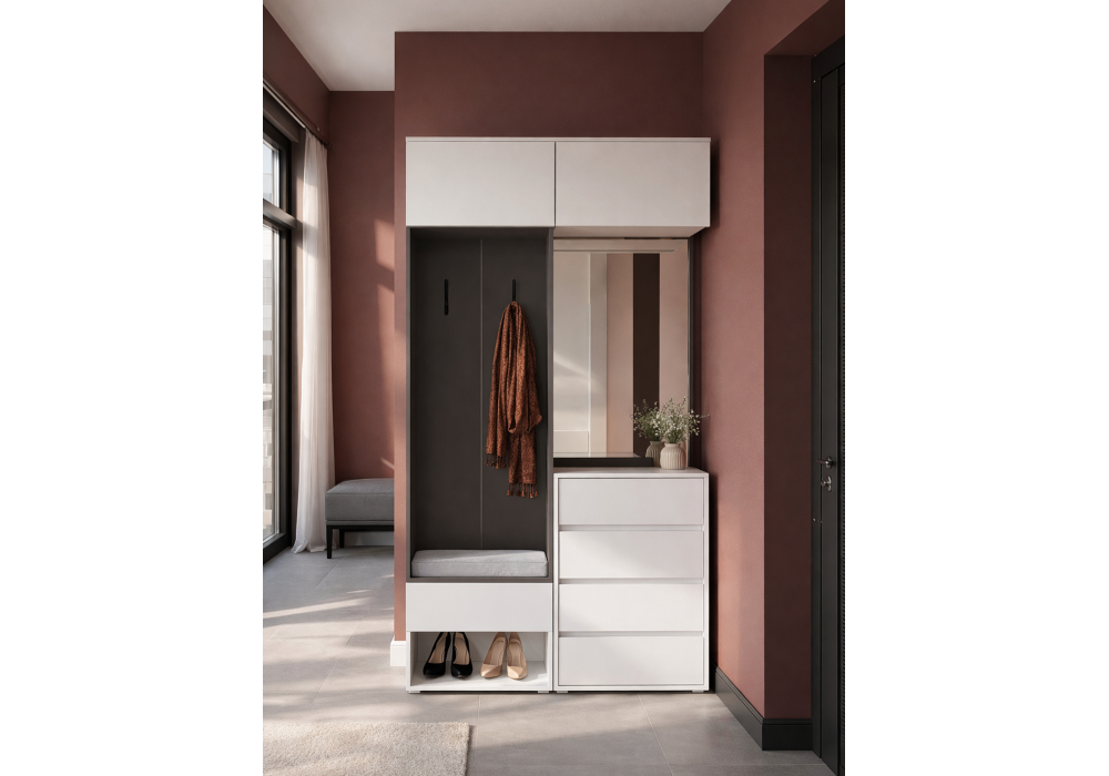 Купить "Модульная прихожая комплектация 8 Woodville Роут белый / графит 620677"