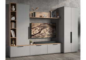 Готовая гостиная комплектация 1 Woodville Филеста шиншилла серая / дуб вотан 664940