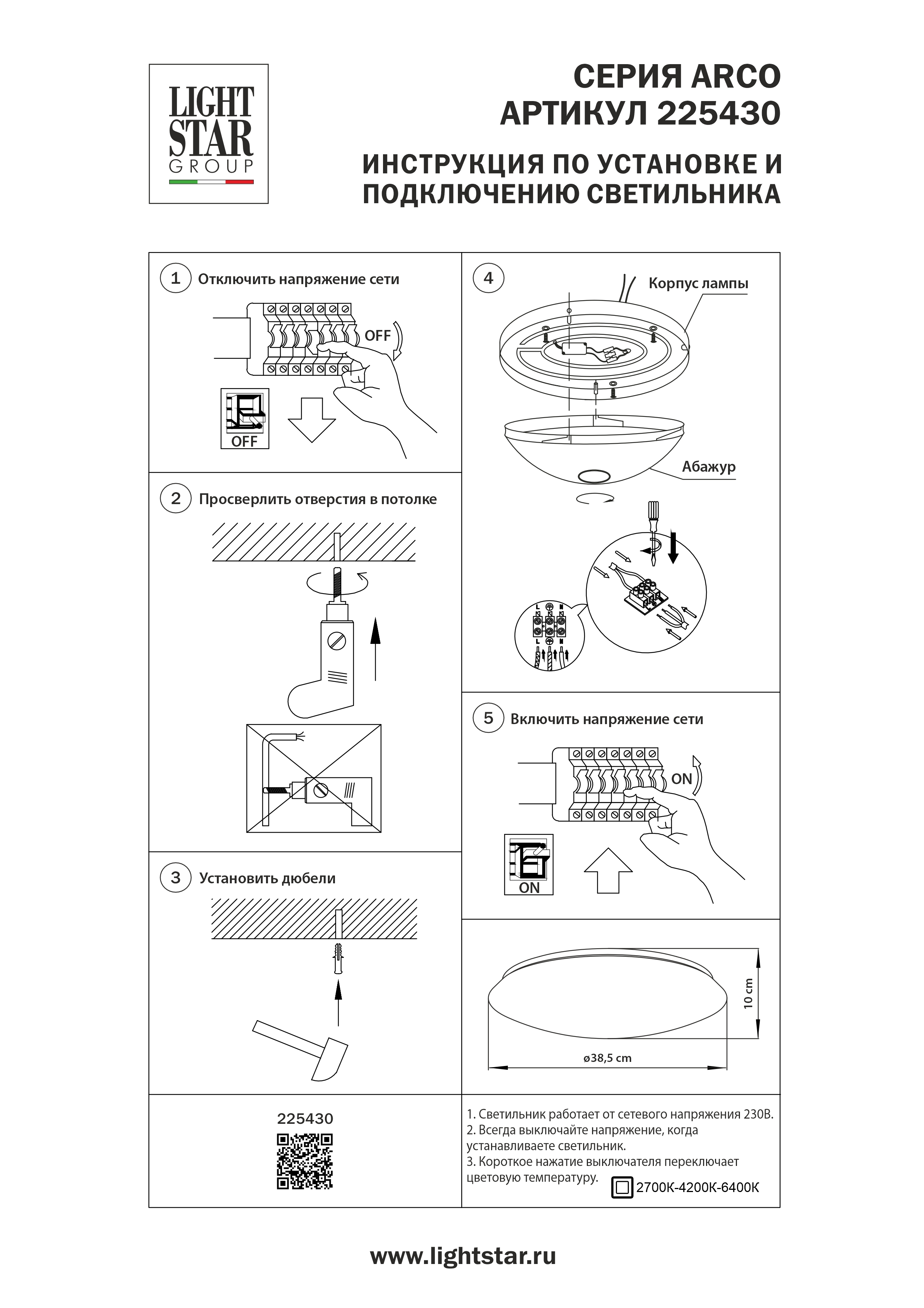 - Цветовая температура, K: 2700/4200/6400