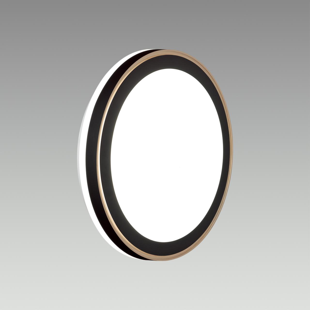Светильник 7620/DLN линии AKUNA состоит из металлического основания (базы) и пластикового рассеивателя. Материал рассеивателя — качественный акрил белого цвета с матовой поверхностью без текстуры. Пластик обеспечивает светильнику равномерное рассеивание и хорошее светопропускание. Форма плафона — круглая, декорирована ободом из пластика черного цвета и кантом медного цвета. На боковой части плафона имеется светящаяся зона, близкая к поверхности, которая красиво подсвечивает потолок и стену. Степень защиты IP43 позволяет использовать светильник в определенных зонах влажных помещений. В комплект входит LED-модуль с линзами мощностью 48 Вт, которая соответствует лампе накаливания 515 Вт, а также переключатель температуры цвета (ССT) на драйвере, с помощью которого осуществляется изменение цветовой температуры 3000/4000/6000К и переход светильника в режим теплого/белого/холодного света. Для установки необходимого режима рекомендуется использовать удлиненный тонкий предмет типа небольшой отвертки.