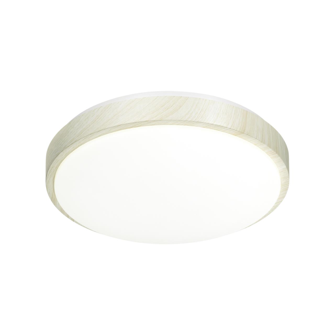 Светильник 7628/СL линии LOSTA состоит из металлического основания (базы) и пластикового рассеивателя. Материал рассеивателя - высококачественный пластик марки PMMA 2.0 белого цвета с матовой поверхностью, обеспечивающий светильнику равномерное рассеивание и хорошее светопропускание. Форма плафона: круглая, декорирована ободом из пластика под беленое дерево. Степень защиты IP43 позволяет использовать светильник в определенных зонах влажных помещений. В комплект входит заменяемый LED модуль с линзами, мощностью 30Вт, которая соответствует лампе накаливания 270Вт. Источник света имеет комфортную цветовую температуру 4000К (белый свет).