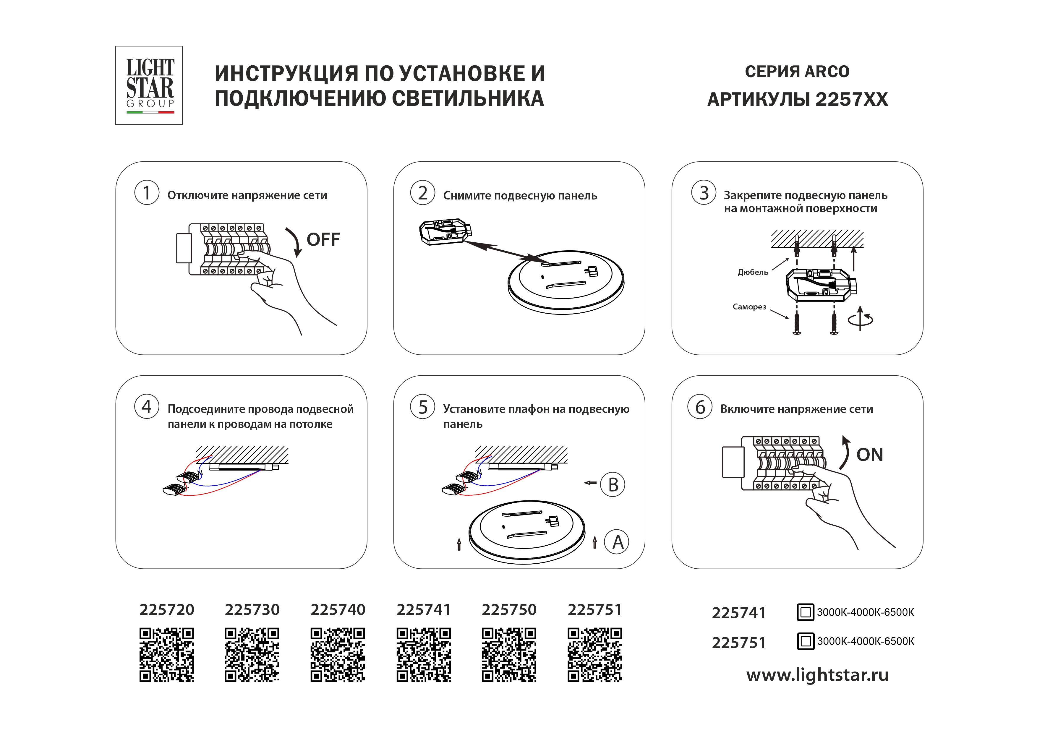 - Цветовая температура, K: 3000/4000/6500