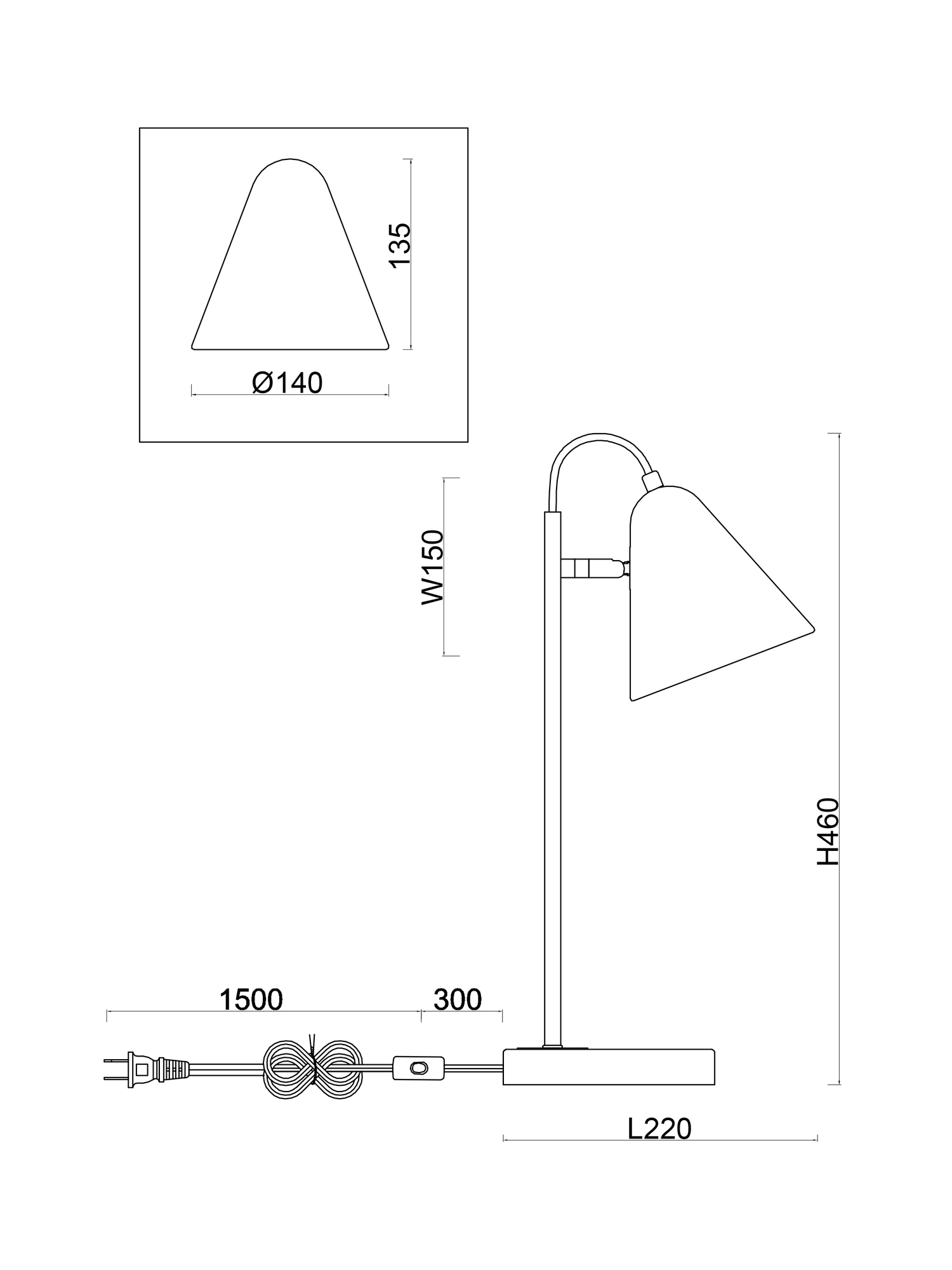 - Высота плафона (абажура): 135