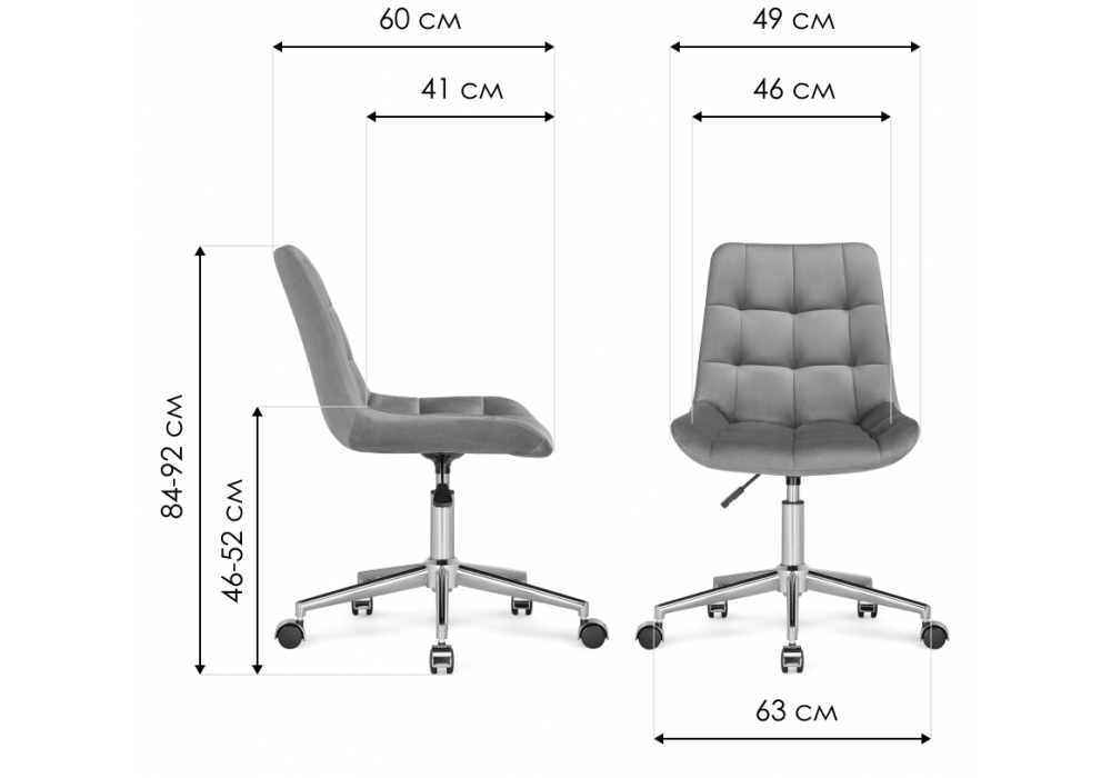 Высота спинки: 38 см. Материал каркаса - металл; Материал сиденья - велюр; Материал обивки - велюр; Цвет ножек - белый; Ширина - 49; Глубина - 60; Высота - 84; Ширина сиденья - 46; Глубина сиденья - 41; Высота сиденья - 46; Высота спинки - 38; Высота максимальная - 92;