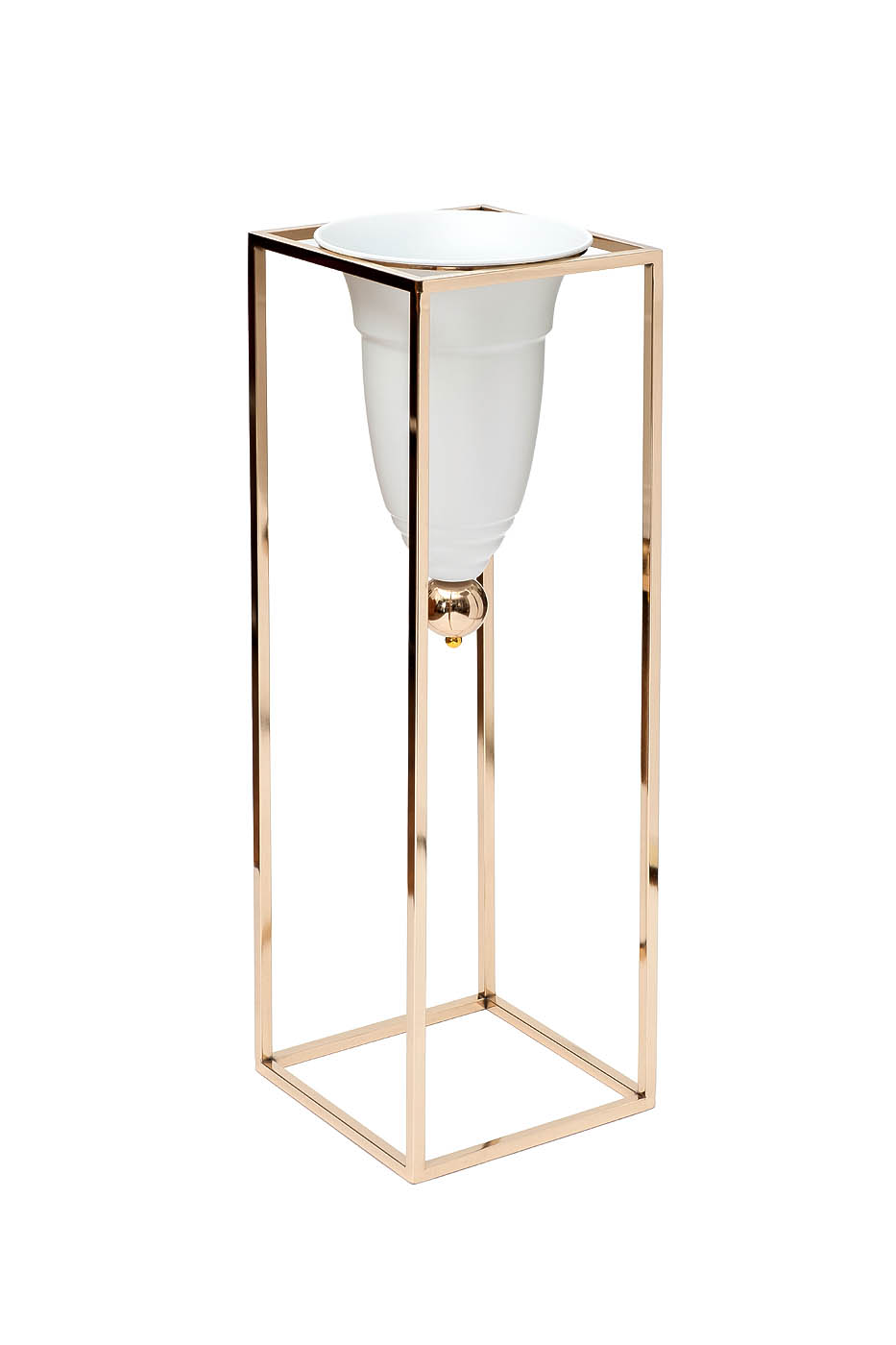Изящное кашпо для цветов на подставке легко и непринужденно вписывается в интерьер арт-деко, уместно смотрится в сочетании с другим позолоченным декором. Оно добавляет обстановке свежести, вносит в атмосферу нотку благородного аристократизма. Прекрасно сочетается с мебелью, текстилем и декоративными элементами в гостиной, спальне, столовой, эффектно смотрится на светлом или темном фоне. Стильное кашпо белого цвета – идеальное решение для современных изысканных интерьеров. Оно добавляет блеска и шика окружающему пространству. Это будет оригинальный подарок для любого ценителя эксклюзивных аксессуаров.