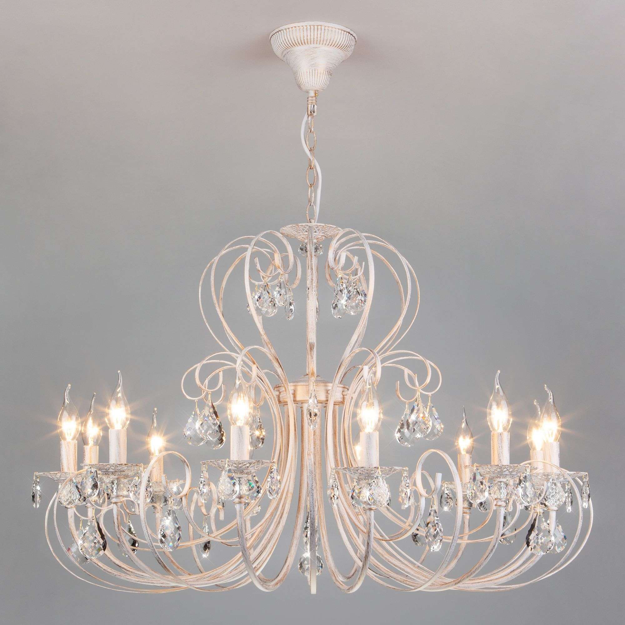 Классическая хрустальная люстра на 12 рожков в цвете белый с золотом / тонированный хрусталь преобразит потолочное пространство и создаст в вашем помещении комфортное полноценное освещение на площади 48 м кв.