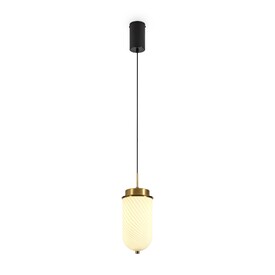 Арматура — металл. Стеклянные плафоны с имитацией мрамора и полосками в ретро-стиле. Интегрированный LED источник света 2700К, угол рассеивания 360°. Высота регулируется.