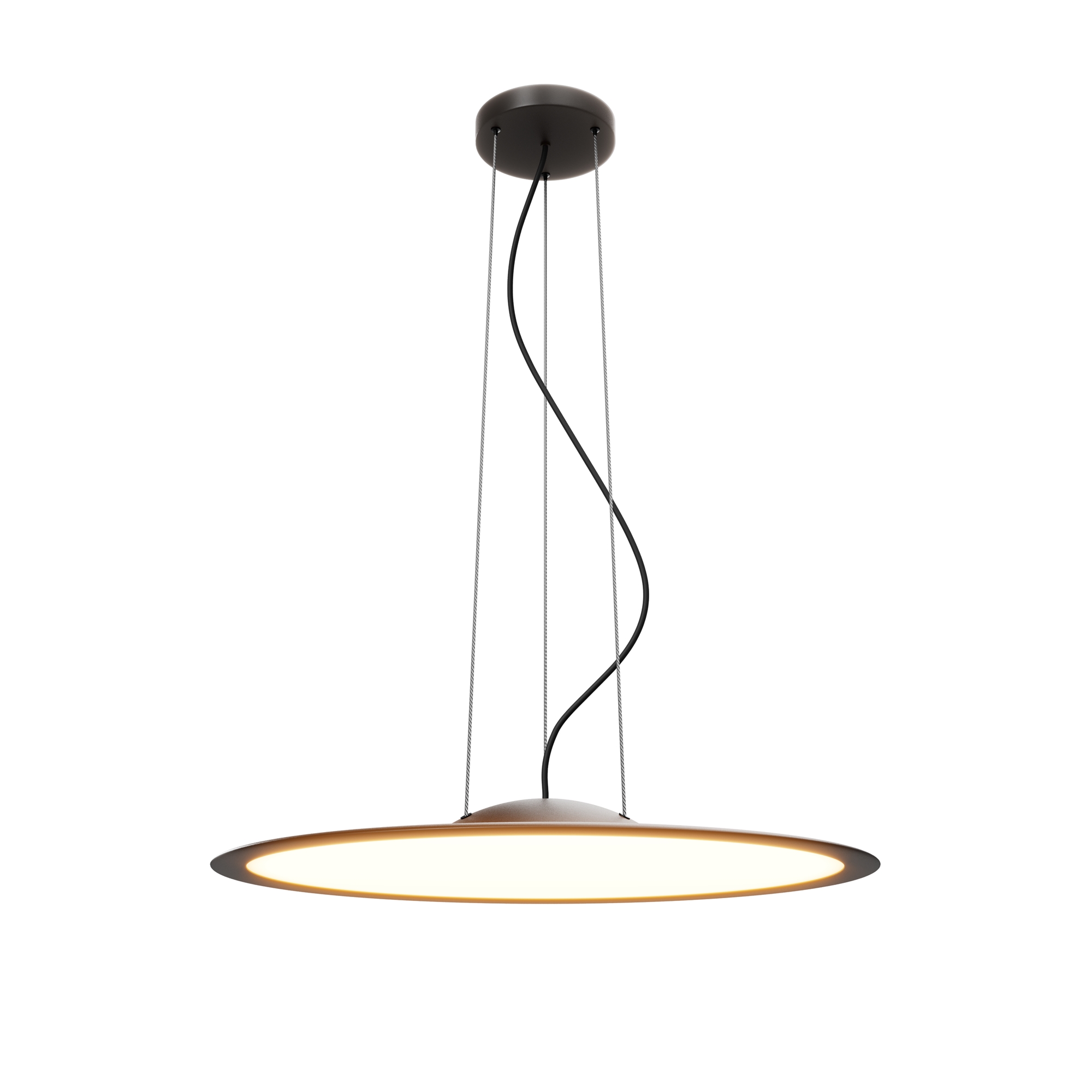 Подвесные светильники серии Industria в монохромном исполнении (белый/черный). Ультратонкий алюминиевый корпус толщиной 12 мм с антибликовым покрытием "сэнди". Матовый акриловый рассеиватель. Встроенный LED-источник с исключительным индексом цветопередачи CRI 97. Угол рассеивания 180°. Дистанционное управление цветовой температурой (2700K-4000K) и диммированием. Диаметр 606 мм, высота регулируется до 3000 мм. Для основного освещения современных интерьеров. Пульт ДУ в комплекте.