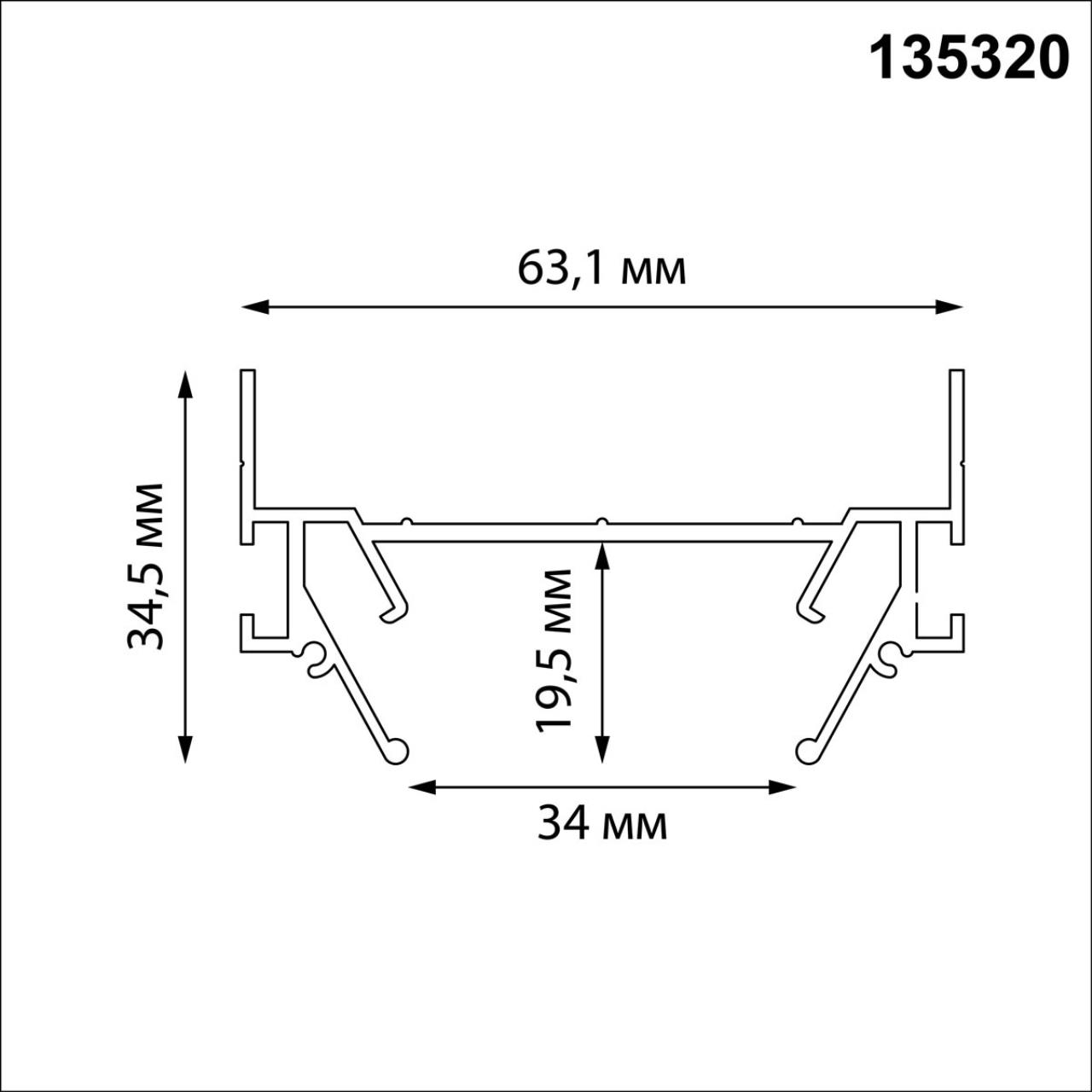Профиль для встраивания однофазного трёхжильного трека в натяжной потолок Novotech EXPERT 135320