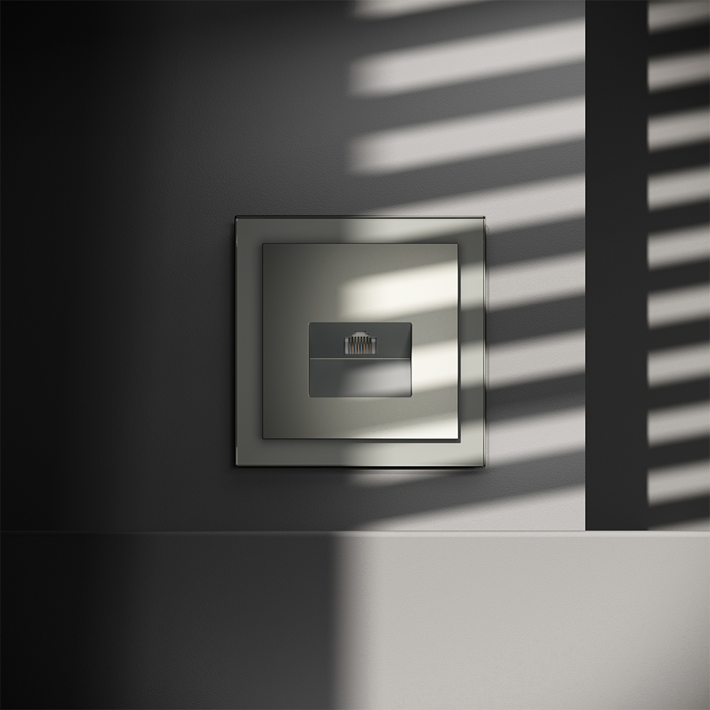 Купить "Розетка компьютерная встраиваемая RJ45 кат.6 Voltum S70 VLS060105 (сталь)"