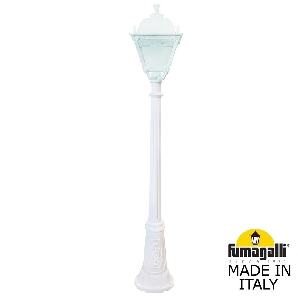 Садово-парковый фонарь FUMAGALLI среднего размера серии SIMON, модель ARTU/SIMON. Парковый фонарь с 1 венчающим светильником большого размера в на классическом столбе ARTU высотой 1,5 м (+высота фонаря). Предназначен для освещения парковых дорожек, cкверов, садовых и ландшафтных композиций, и других общественных пространств. Используется в качестве основного уличного освещения на городских улицах и площадях. Изготовлены в Италии, по уникальным технологиям "FUMATECH" из современного композитного полимера RESIN. Этот материал в 5 раз прочнее металла, не ржавеет, не окисляется, не выгорает на солнце, его не нужно красить. Все светильники пыле-влаго защищены по стандарту IP55 (Пылезащищенные, защита от водяных струй с любого направления). Рассеиватель выполнен из антивандального, не мутнеющего и не горючего PMMA (ПолиМетилМетаАкрилат). Срок службы светильника - не менее 20 лет. Температура использования от -60 до +90. В серии SIMON есть садовые фонари в настенном (OFIR/SIMON, MIRRA/SIMON) подвесном (SICHEM/SIMON) и наземном исполнении (IAFAET.R/SIMON, ALOE.R/SIMON, ARTU/SIMON, GIGI/SIMON, RICU/SIMON, NEBO/OFIR/SIMON 1L, NEBO/OFIR/SIMON 2L, TABOR/ADAM/SIMON 3L) со столбами разной высоты, с разным количеством и конфигурацией голов. Консоли настенных фонарей и кронштейны светильников на столбах освещения могут устанавливаться в положение вверх и вниз. Столбы выше 150 см имеют в основе мощную стальную трубу с двойной оцинковкой. При заказе требуется выбрать цвет корпуса, цвет плафона и тип патрона (Е-27 или LED GX-53). Возможен светодиодный вариант. По стилю и дизайну серия уличных светильников SIMON похожа на светильники среднего размера серии CEFA. По размеру относится к большим парковым светильникам как серия NOEMI и GLOBE 400.