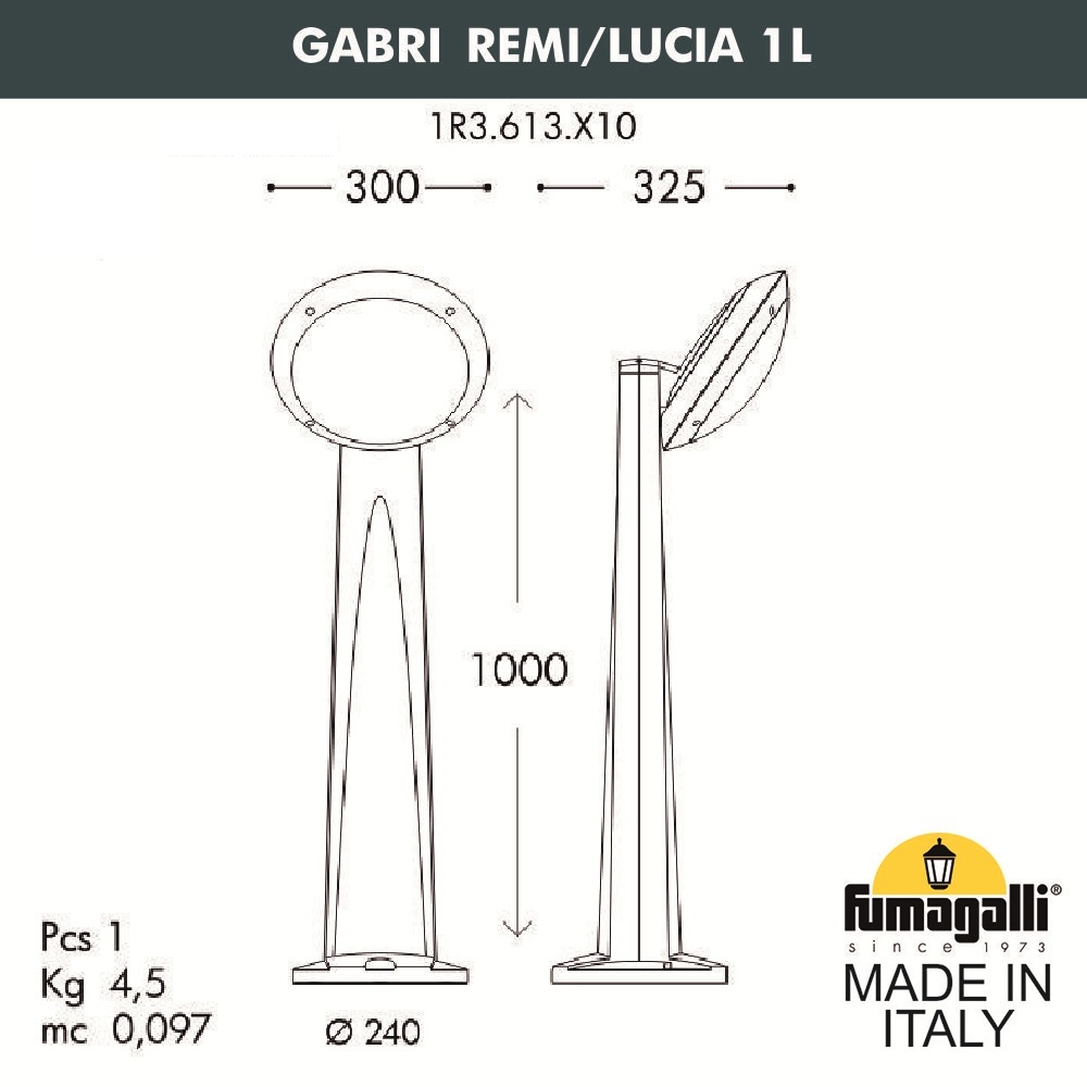 Садовый светильник-столбик наклонный Fumagalli Gabri remi/Lucia 1l 1R3. 613. X10. WYE27