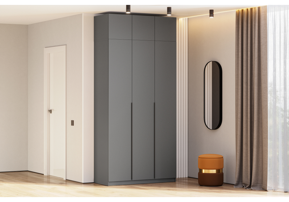 Купить "Шкаф текстурный комплектация 2 Woodville Даиго с антресолью графит серый 676150"