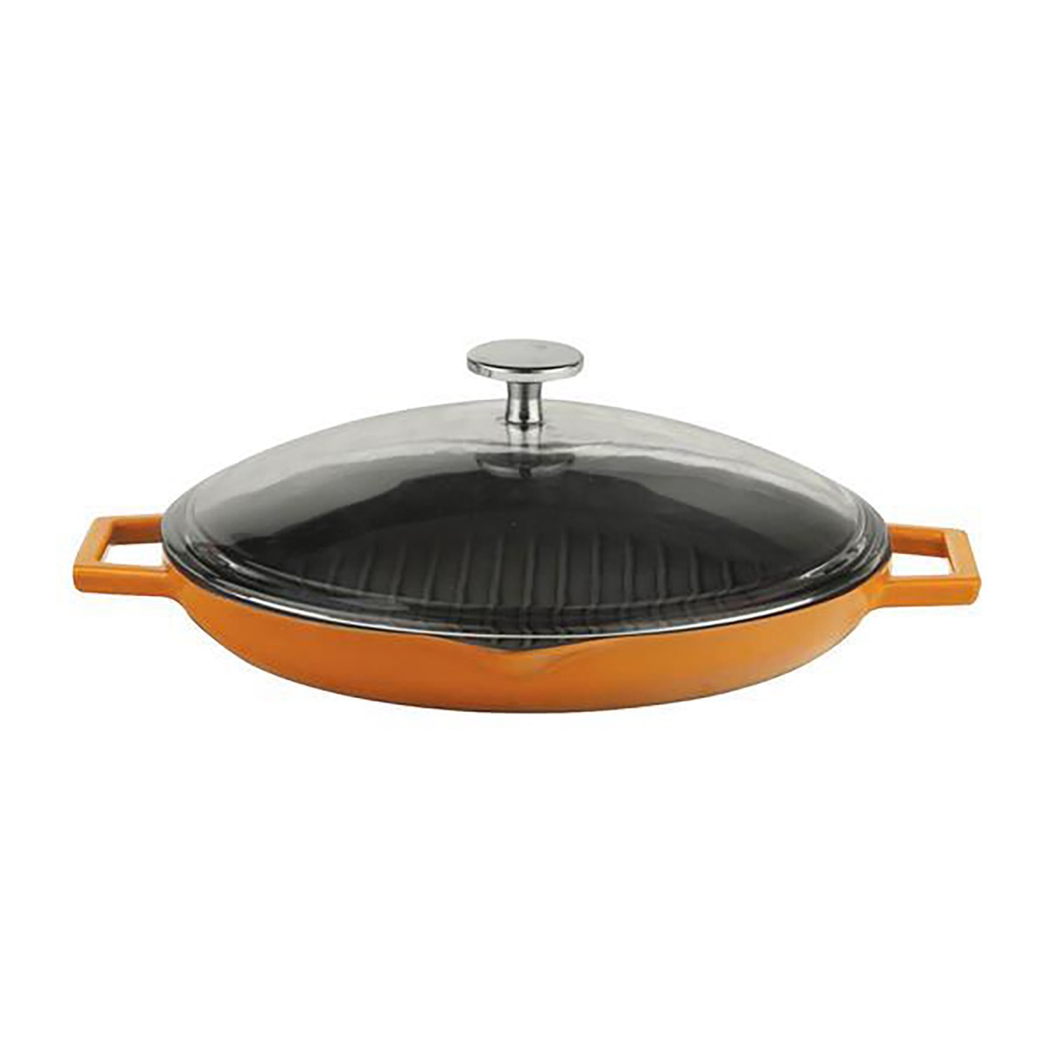СКОВОРОДА-ГРИЛЬ Ø26, СО ВСТРОЕННЫМИ МЕТАЛЛИЧЕСКИМИ РУЧКАМИ И СТЕКЛЯННОЙ КРЫШКОЙ ОРАНЖЕВОГО ЦВЕТА LAVA