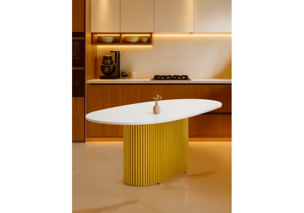 Купить "Стол деревянный Woodville Барон О 180 х 90 белая пленка шагрень / золотые ноги 620283"