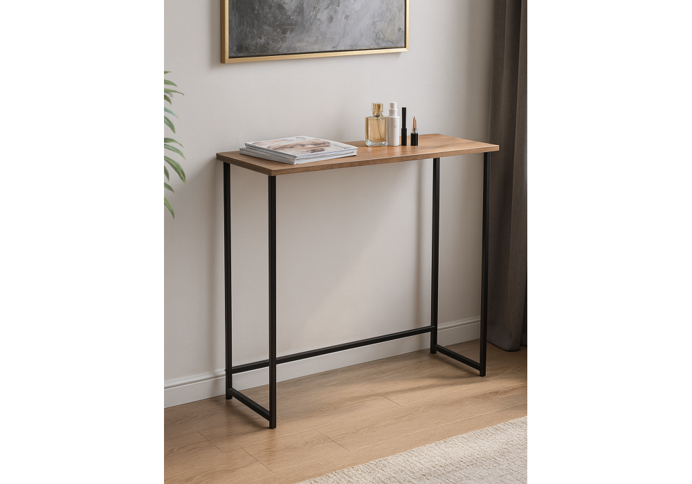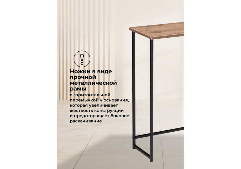Консольный столик Феот сочетает в себе практичность и современный дизайн. Идеально подходит для прихожей, гостиной или коридора. Материал каркаса - металл; Цвет ножек - черный; Ширина - 80; Глубина - 30; Высота - 77; Длина - 80;