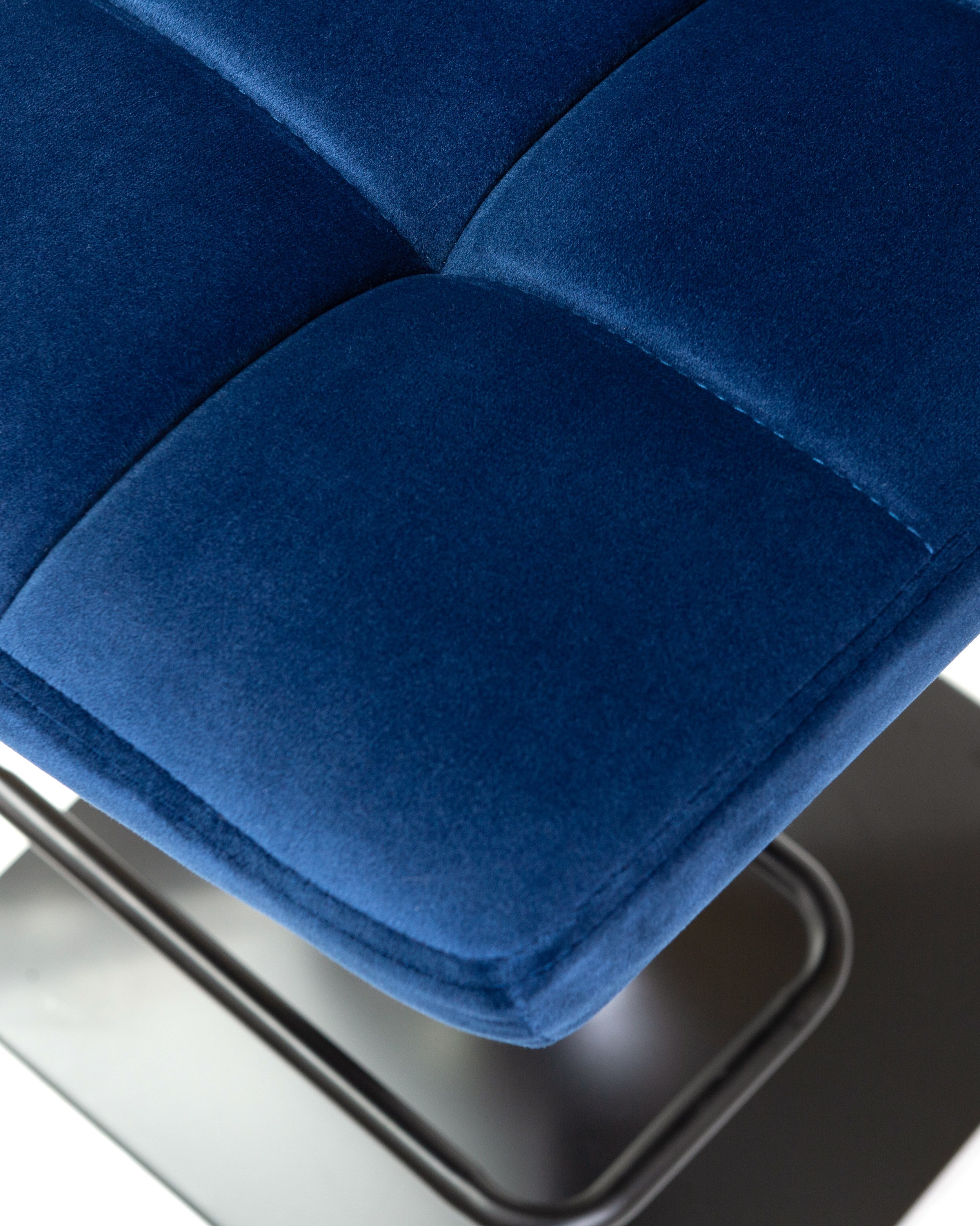 - Цвет сиденья: синий велюр