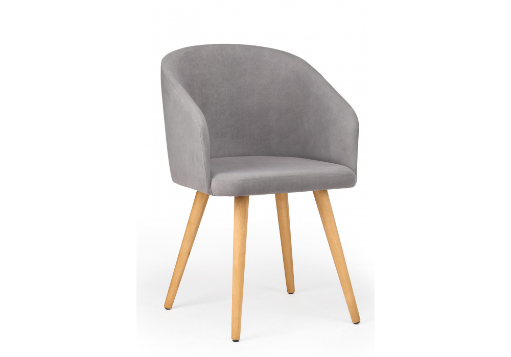 Материал каркаса - дерево; Материал сиденья - велюр; Материал обивки - велюр; Цвет ножек - натуральный; Ширина - 54; Глубина - 56; Высота - 82; Ширина сиденья - 43; Глубина сиденья - 46; Высота сиденья - 49;