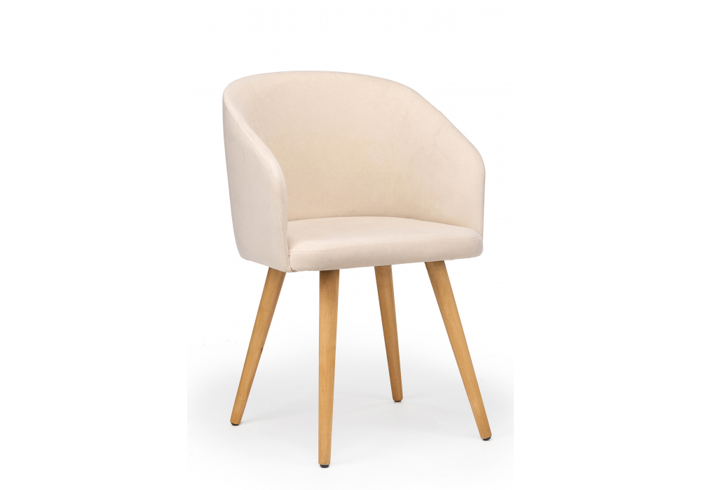 Материал каркаса - дерево; Материал сиденья - велюр; Материал обивки - велюр; Цвет ножек - натуральный; Ширина - 54; Глубина - 56; Высота - 82; Ширина сиденья - 43; Глубина сиденья - 46; Высота сиденья - 49;