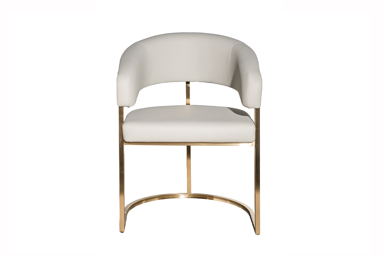Этот обеденный стул с золотым каркасом словно создан для интерьеров, где ценят благородные акценты и продуманную эстетику. Светло-серая матовая экокожа выгодно подчеркивает изящество линий спинки и подлокотников, а основание в матовом золоте добавляет образу современную роскошь. Конструкция выглядит лёгкой, но сохраняет устойчивость и комфортную посадку для обеденной зоны или рабочего пространства. Такой светло-серый стул из экокожи становится не просто посадочным местом, а акцентной деталью интерьера, которая отражает вкус и статус владельца. Габариты сиденья - 52*58*45см, наполнитель - пенополиуретан.