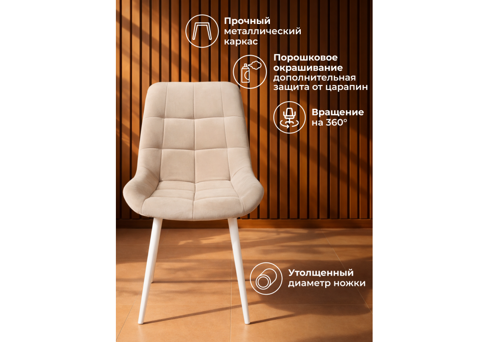 Купить "Стул на металлокаркасе поворотный Woodville Челси 360 К бежевый (zd 210) / белый np 632481"