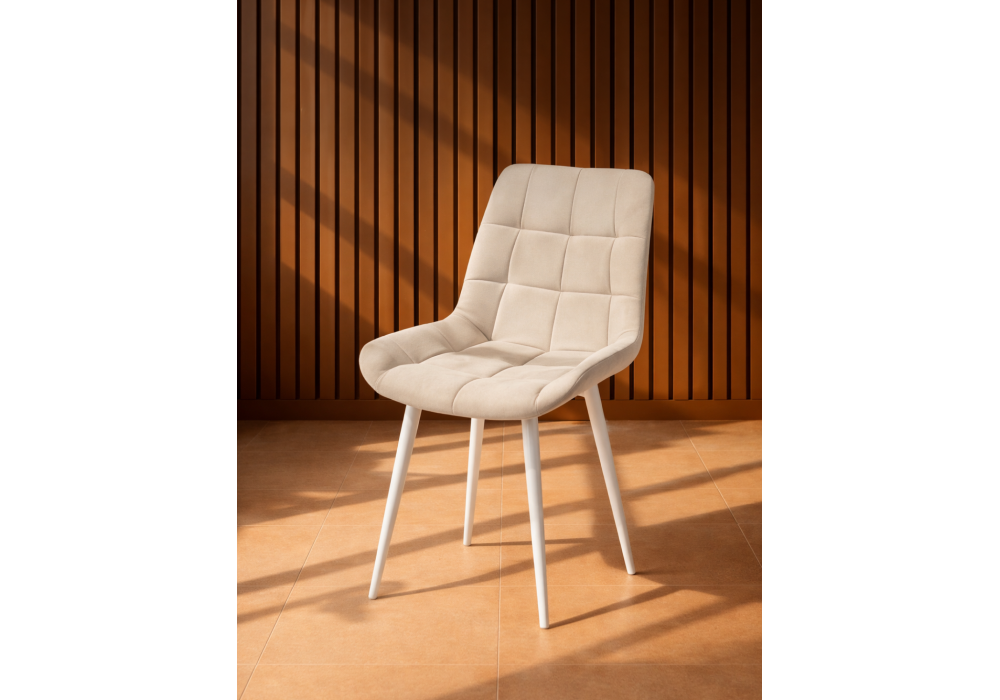 Материал каркаса - металл; Материал сиденья - велюр; Материал обивки - велюр; Цвет ножек - белый; Ширина - 50; Глубина - 60; Высота - 80; Ширина сиденья - 44; Глубина сиденья - 41; Высота сиденья - 48;