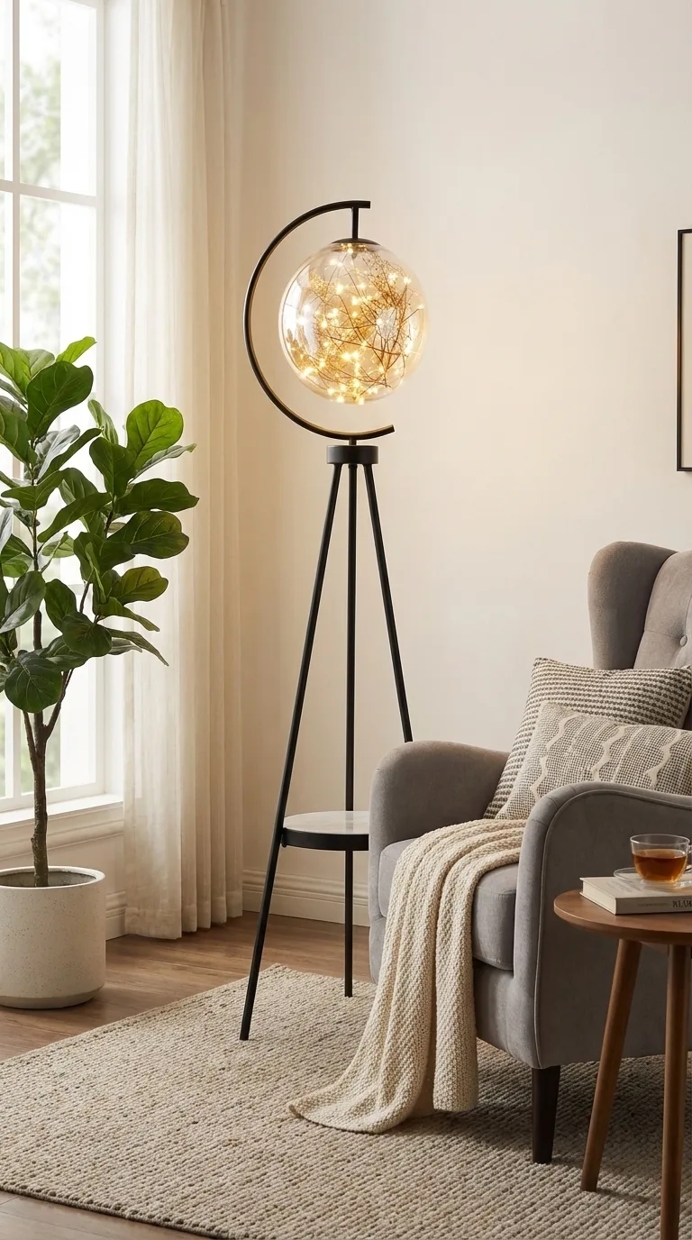 На треноге, С 1 плафоном, Светодиодные, Cо столиком?Способ крепления и установки люстры.