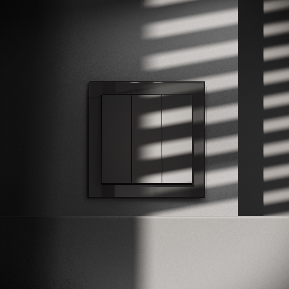 Купить "Выключатель встраиваемый трехклавишный 10А Voltum S70 VLS030108 (черный матовый)"